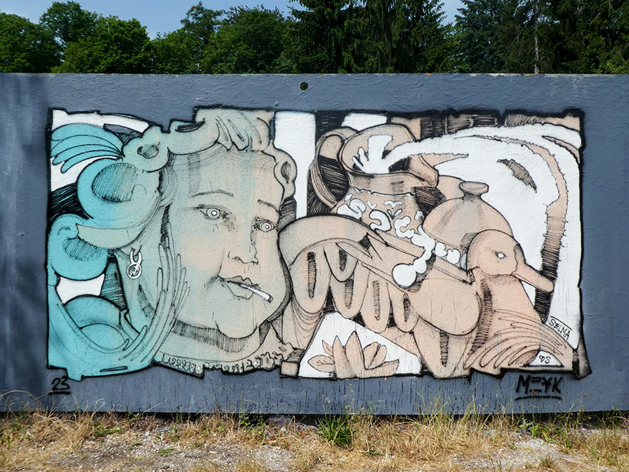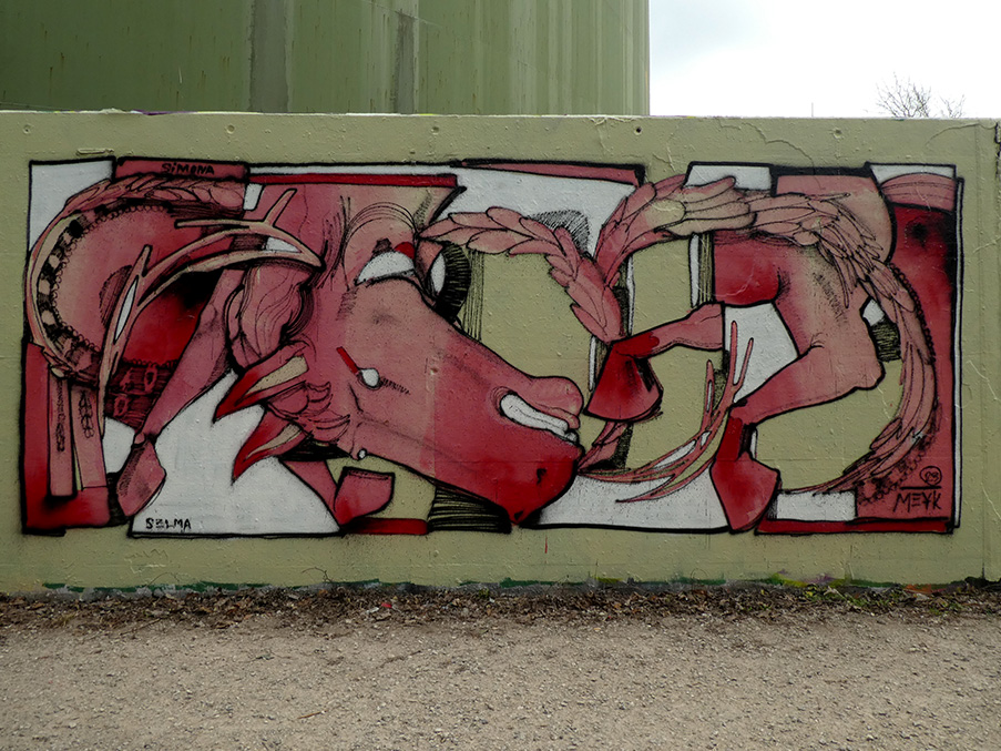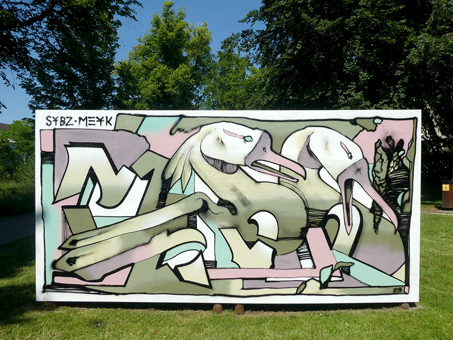 Mes peintures, réalisées pour le plaisir, ne sont pas élaborées à partir d’une esquisse finale. Elles sont toutes composées sur le vif, mêlant croquis, inspirations de photos ainsi que des formes abstraites découlant de l’imagination du moment…Il y en a aussi quelques-unes qui sont confectionnées avec SYBZ, en mode fusion, sans esquisses non plus, à 4 mains!